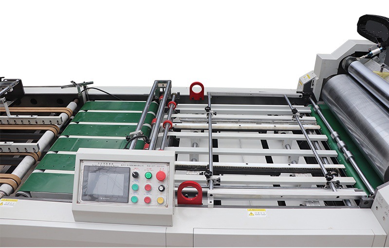 滾刀及送膜采用伺服電機控制傳送及滾筒吸附連續(xù)式粘貼,相比傳統(tǒng)間歇式粘貼具有貼合速度快,精度高,對薄膜要求低等優(yōu)點,可一次性貼3張30絲厚膜。帶多刀功能。