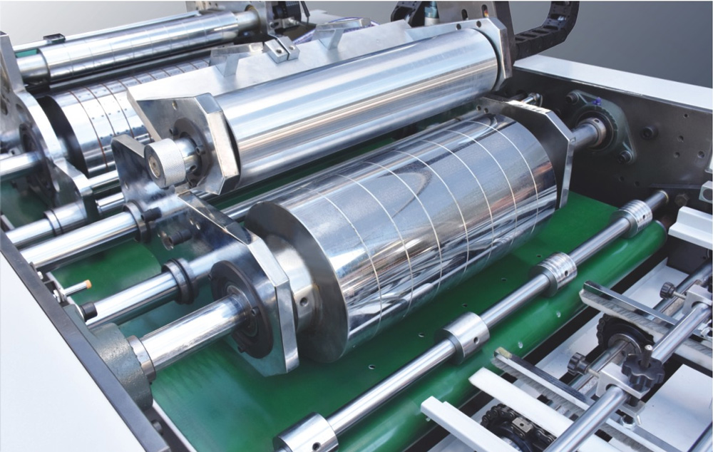 4、涂膠部:涂膠滾筒的橫向于縱向分別由伺服電機(jī)驅(qū)動(dòng),可不停機(jī)直接進(jìn)行雙向調(diào)節(jié),涂膠部還具備空張避膠功能,避免膠水接觸到皮帶,減少因?yàn)榭諒埗l繁停機(jī)清洗皮帶的麻煩。
