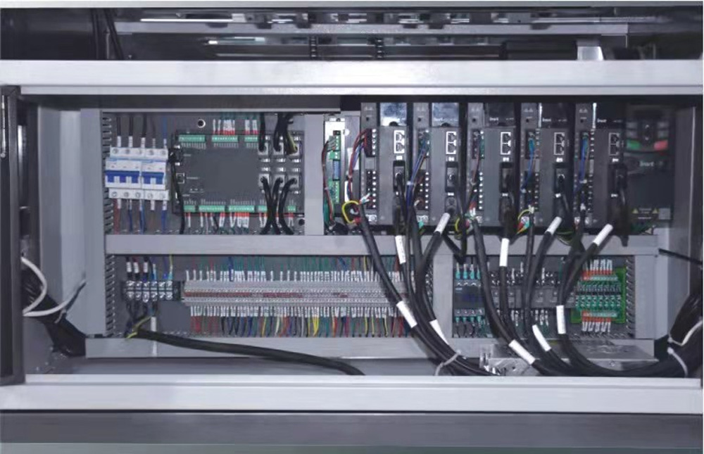 8、電氣系統(tǒng):整機(jī)采用全伺服運(yùn)動(dòng)控制,各種電氣元件、檢測(cè)開關(guān)均采用日本、臺(tái)灣、法國、德國等公司產(chǎn)品。